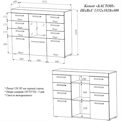 Комод Бастон (Эра) продается в интернет-магазине mebel-online-nalchik.ru по цене 13 534 руб. Есть доставка по Нальчику и Кабардино-Балкарии. Возможность подъема на этаж и сборки уточняйте у менеджера по телефону 8(800)505-27-11.