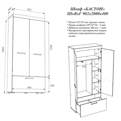 Шкаф Бастон (Эра) продается в интернет-магазине mebel-online-nalchik.ru по цене 12 434 руб. Есть доставка по Нальчику и Кабардино-Балкарии. Возможность подъема на этаж и сборки уточняйте у менеджера по телефону 8(800)505-27-11.